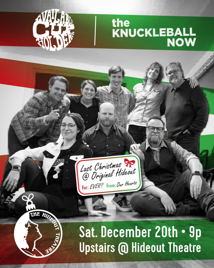 With a combined 51 years in existence, the Cupholders and TKN are set to bring their legendary irreverent comedy and story chops to the Hideout stage ONE LAST TIME. Expect touching moments, meta commentary, and girthy gut laughs.