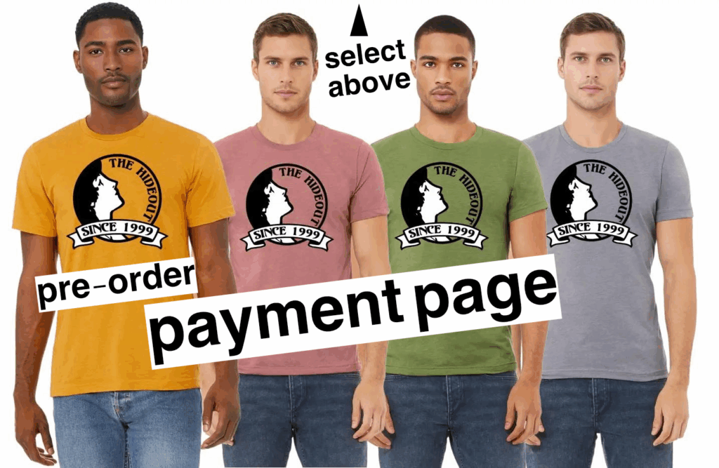 Pre-ordering a Hideout Logo Shirt is a two step process.